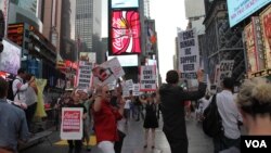 Участница акции протеста на Таймс-сквэр София Соловьева сказала, что вопрос корреспондента «Голоса Америки» о ее собственной, Софии, сексуальной ориентации в данной ситуации является неуместным. «Здесь идет речь о защите прав человека, – сказала она. – Когда какую-то группу людей ущемляют, избивают, притесняют, – и все должны встать на защиту их прав, неважно, гей ты или нет».