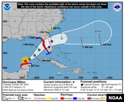 Ранее власти Флориды выпустили приказы об эвакуации в ряде округов на западном побережье штата. В том числе — в районе залива Тампа, где находится одноименная городская агломерация с населением свыше 3 миллионов человек. «Нам нужна серьезно отнестись к "Милтону", — заявила мэр Тампы Джейн Кастер на пресс-конференции. — Пожалуйста, подготовьтесь соответственно и уезжайте из города».