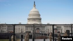 Здание Капитолия по-прежнему окружено временным заграждением с колючей проволокой наверху, и его все еще охраняют около 5 тысяч военнослужащих Национальной гвардии.