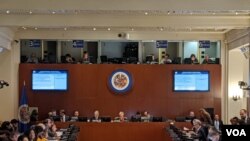 В тексте одобренной резолюции говорится, что организация «немедленно приостановит статус Российской Федерации в качестве постоянного наблюдателя при ОАГ».