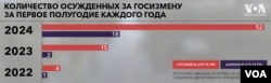 «Важные истории» также отметили рост числа приговоров в отношении военнослужащих: если с января по июнь 2023 года было осуждено 2694 военных, то в этом году это число превысило 6 тысяч. По сравнению с прошлым годом в три раза увеличилось количество осужденнных за правонарушения, связанные с военной службой, а в сравнении с периодом до полномасштабного российского вторжения в Украину — и вовсе в 7,5 раз.